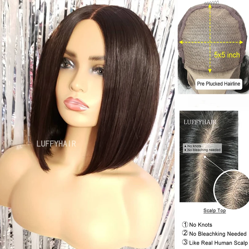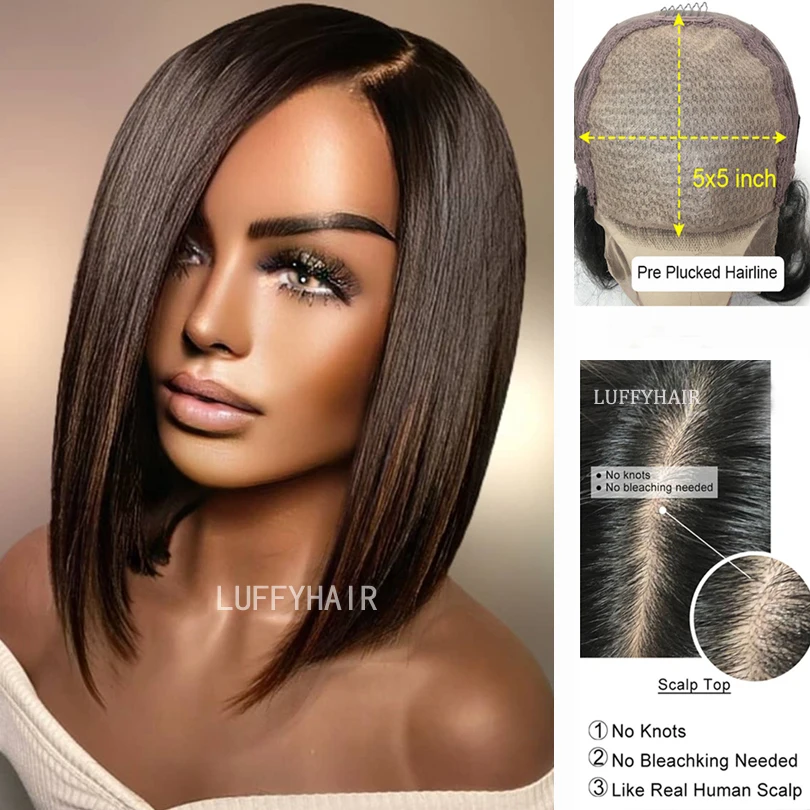 Парик LUFFYHAIR 5x5 на шелковой основе, парики без повреждений, Боб, лед, боковая часть, Бразильская бесклеевая шелковая основа, парик из искусственных человеческих волос с детскими волосами