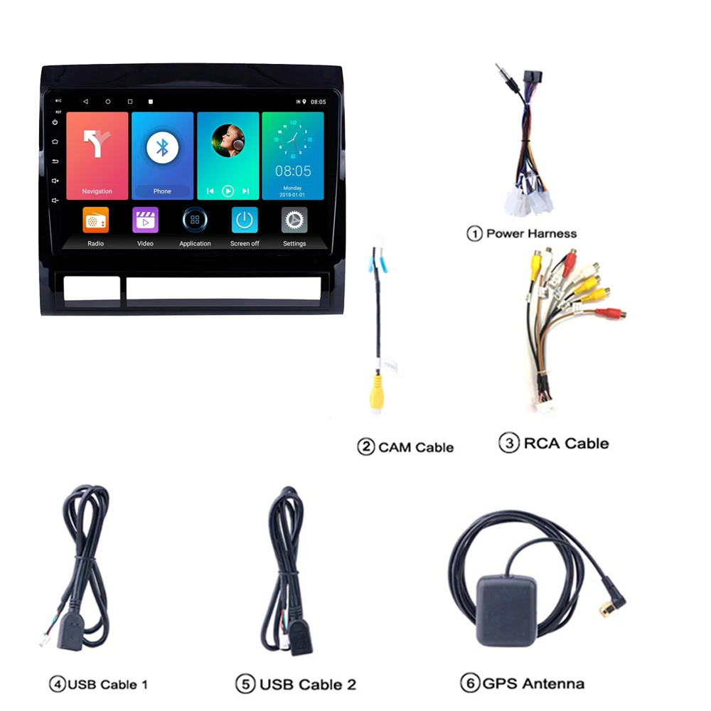 1 х TOYOTA TACOMA/HILUX Android автомобильное радио1 х Кабель питания1 x Антенна GPS1 x вход камеры1 х RCA вход и выход2 x USB кабельРуководство по эксплуатации-1 шт.