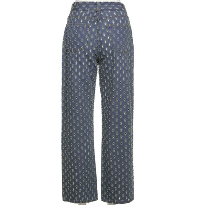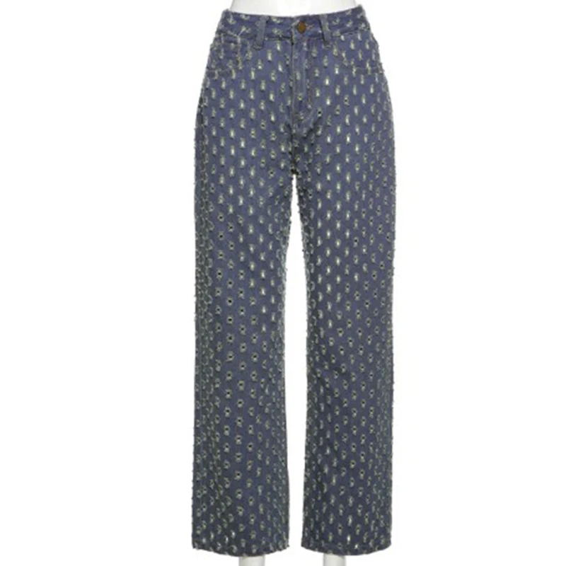 Модные джинсы с маленькими отверстиями, шикарная одежда в стиле хип-хоп, городские повседневные брюки в стиле E-girl, женские брюки в стиле панк