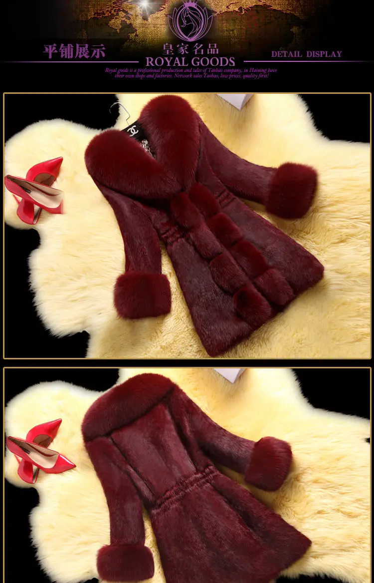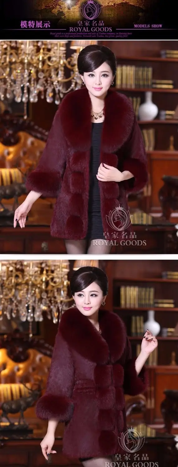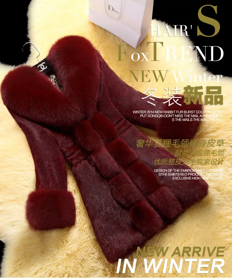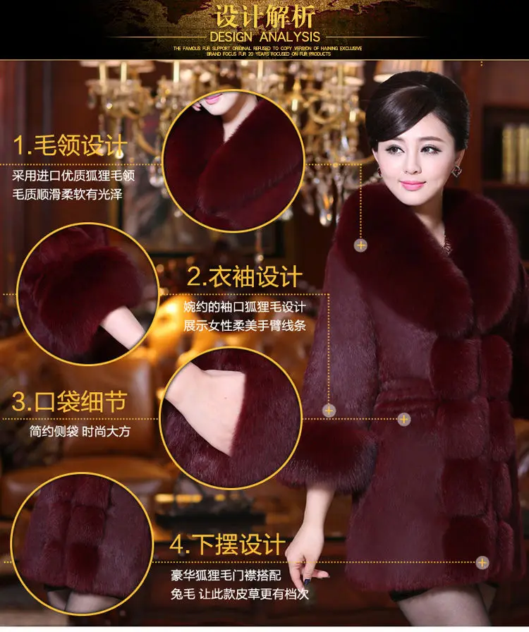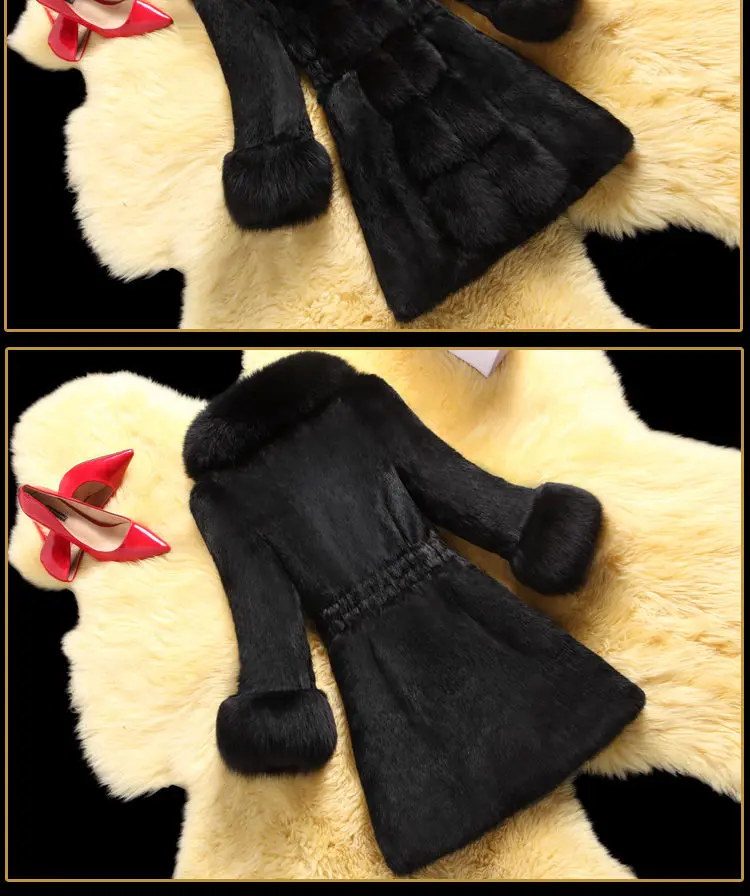 Женское пальто из искусственного меха средней длины, с воротником из искусственного меха кролика