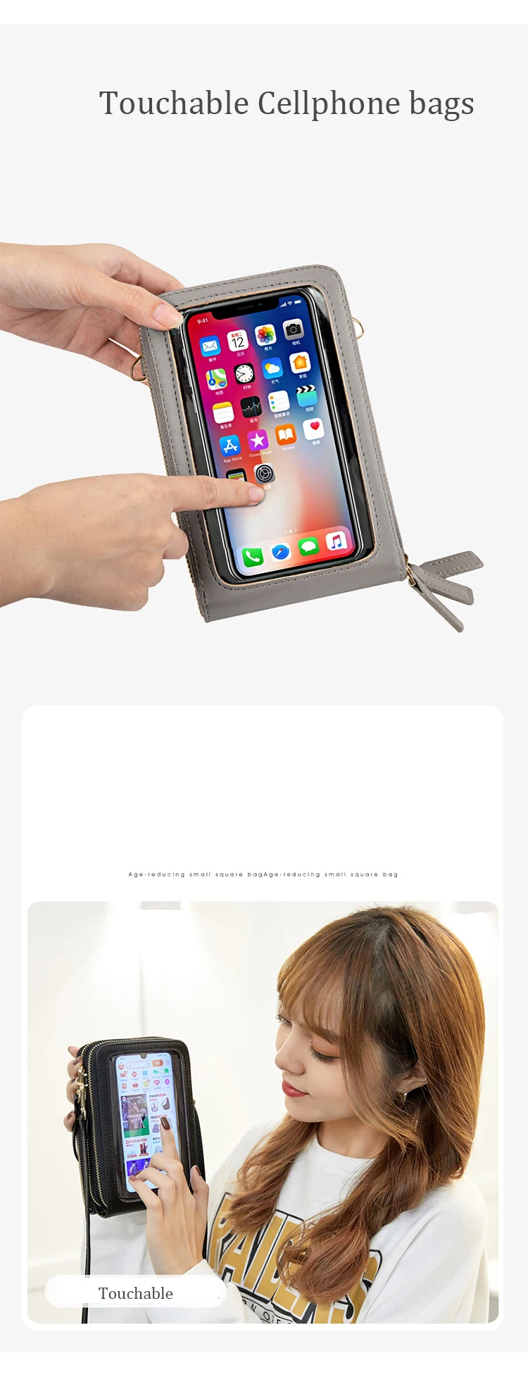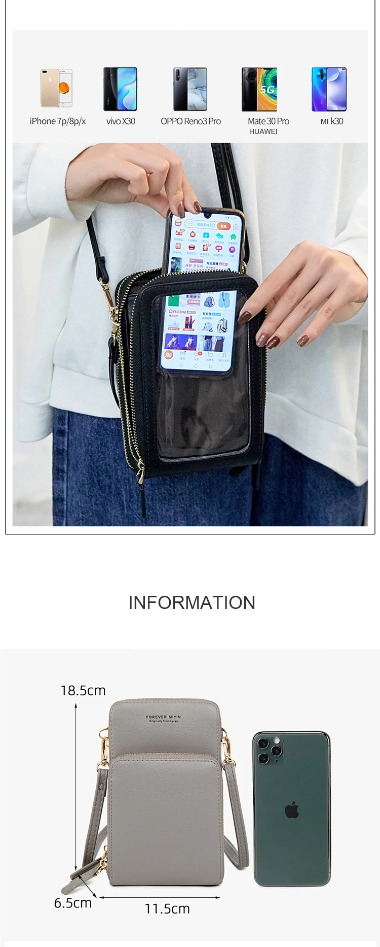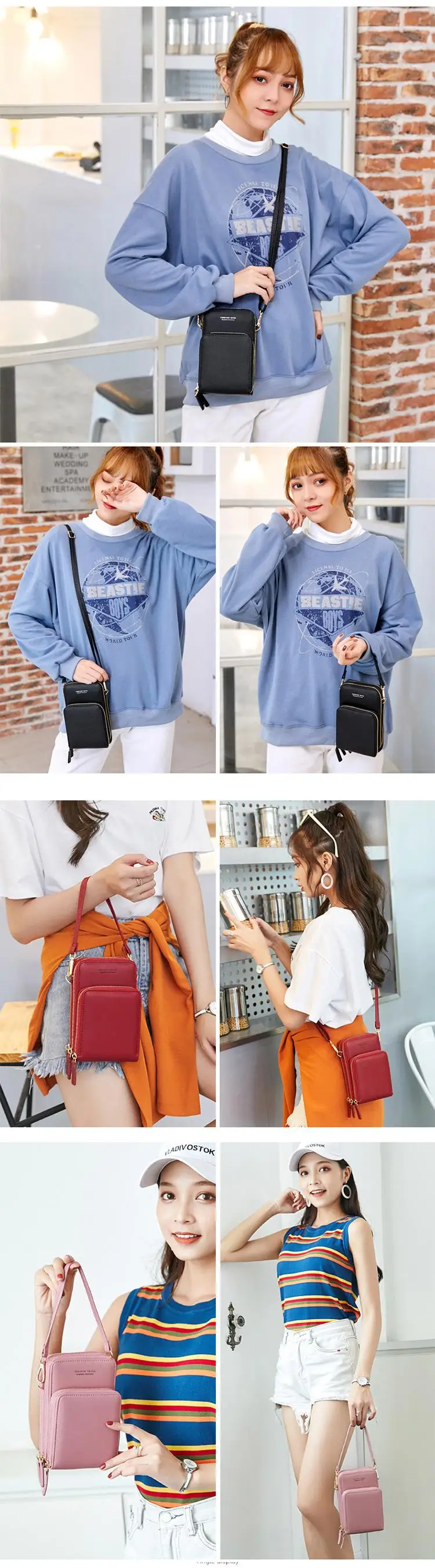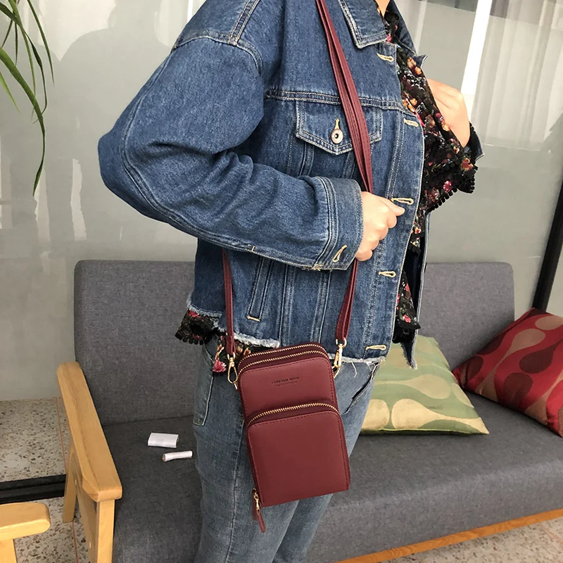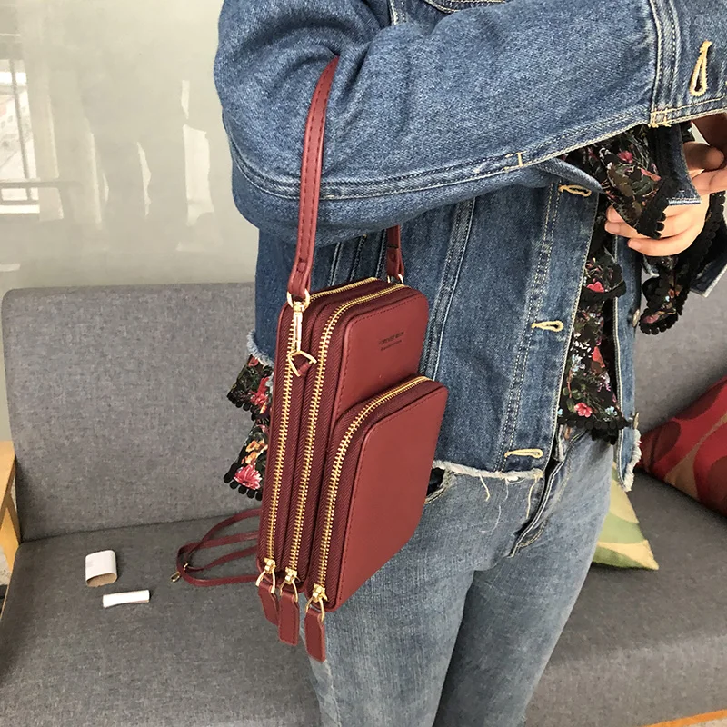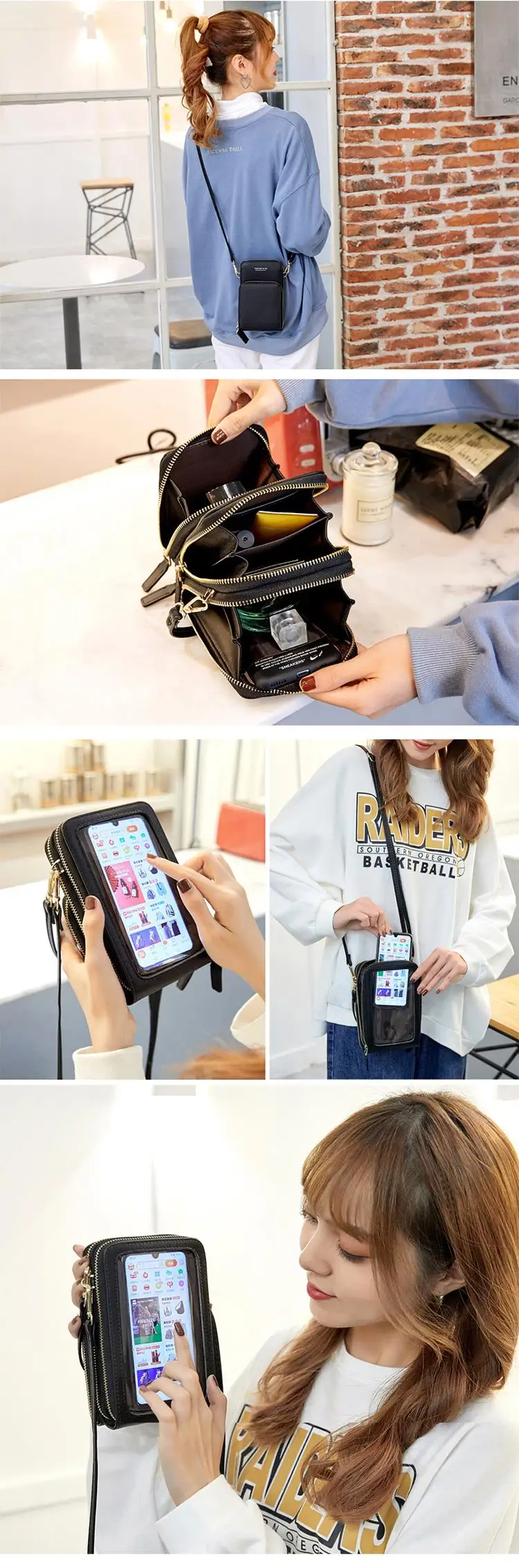 Миниатюрные сумки через плечо для женщин, многофункциональный кошелек для мобильного телефона с сенсорным экраном и кармашком для карт, маленькая дамская сумочка, Женский мессенджер