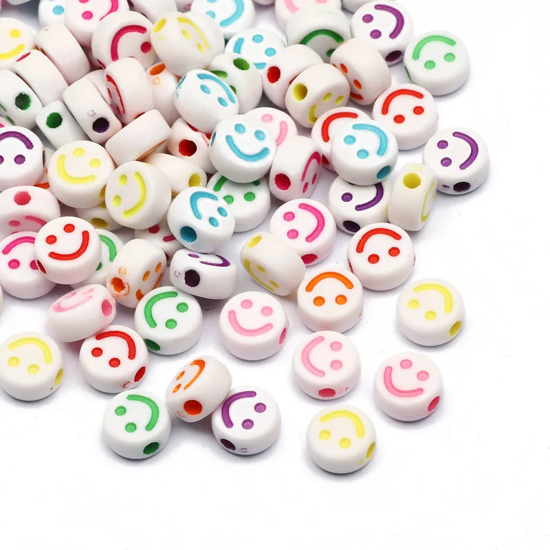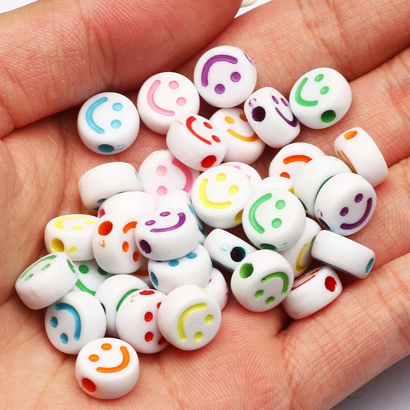 Смешанные акриловые бусины с улыбкой 4*7 мм, круглые плоские бусины...