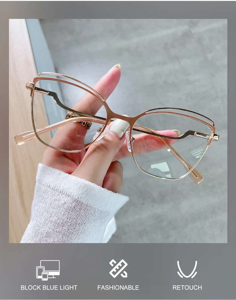 Женский синий светильник, блокирующие очки, металлическая оправа кошачий глаз, мужские очки для компьютера, оптическая оправа, тренд