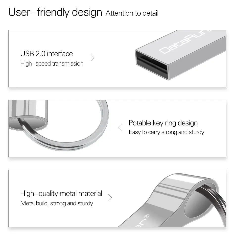 USB-флеш-накопитель DataRunner, металлический, 128 ГБ, 64 ГБ, 32 ГБ, 16 ГБ, 8 ГБ, с кольцом для ключей, USB 2,0
