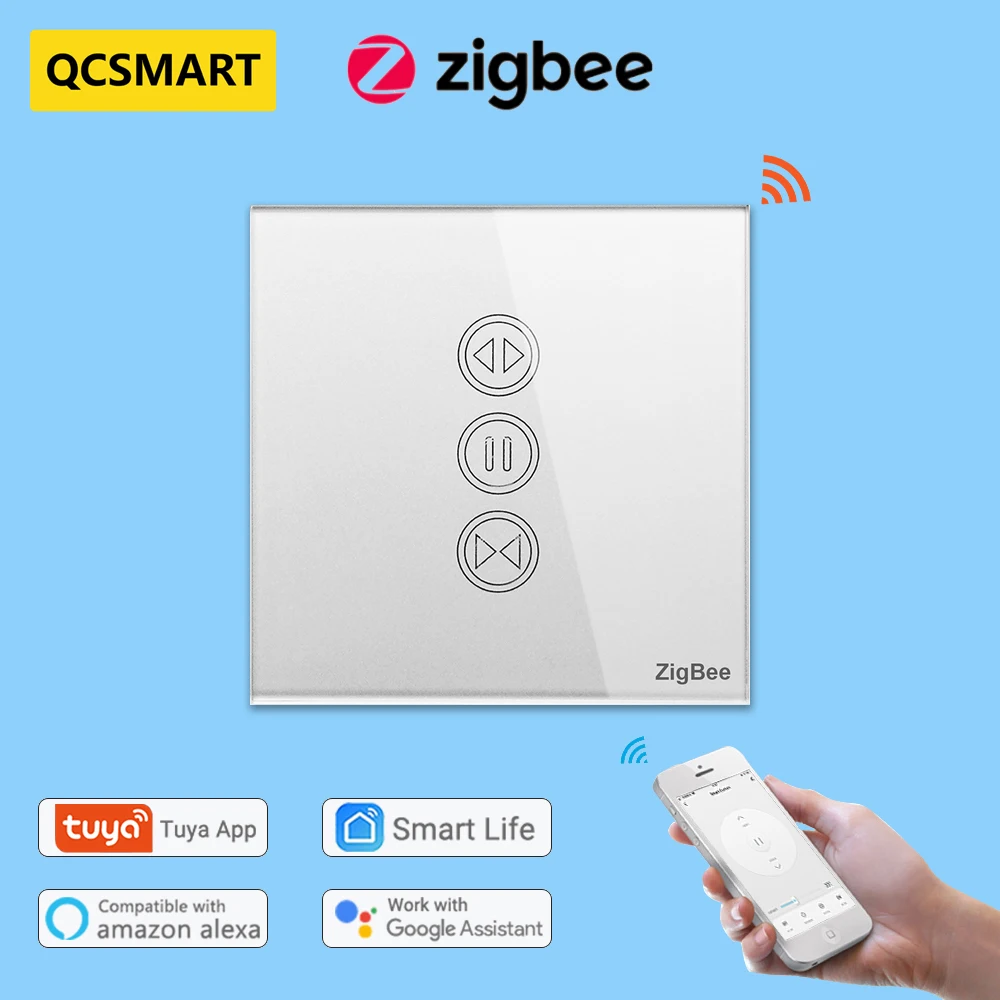 Смарт-занавес Tuya ZigBee, 3,0 дюйма, сенсорный переключатель для роликовых затворов, таймер, Поддержка Google Home, Alexa Automation, сделай сам