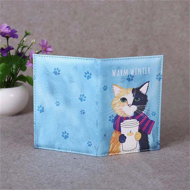 Модная дорожная Обложка для паспорта с мультяшным котом для женщин и мужчин, Обложка для паспорта, кредитных карт, чехол из искусственной кожи, визитница, кошелек для паспорта