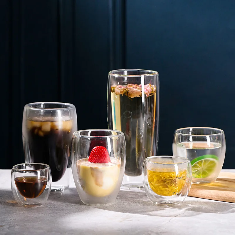 Стеклянные Прозрачные Термостойкие чашки ручной работы с двойными стенками для чая и напитков, кружка для здоровых напитков, кофейные чашки, стеклянные кофейные кружки с изоляцией