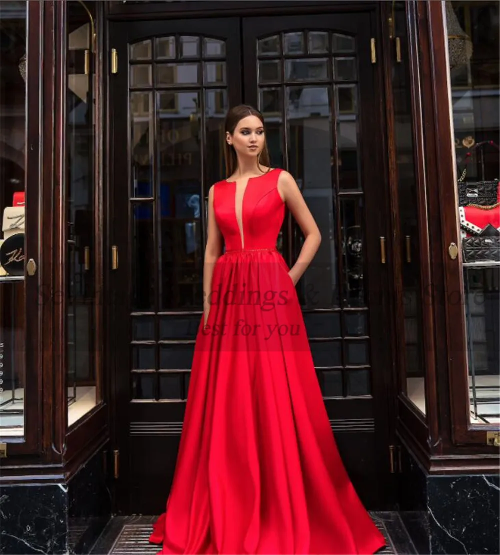 Женское атласное вечернее платье Sevintage, длинное красное платье с глубоким V-образным вырезом, с корсетом на спине, для выпускного вечера