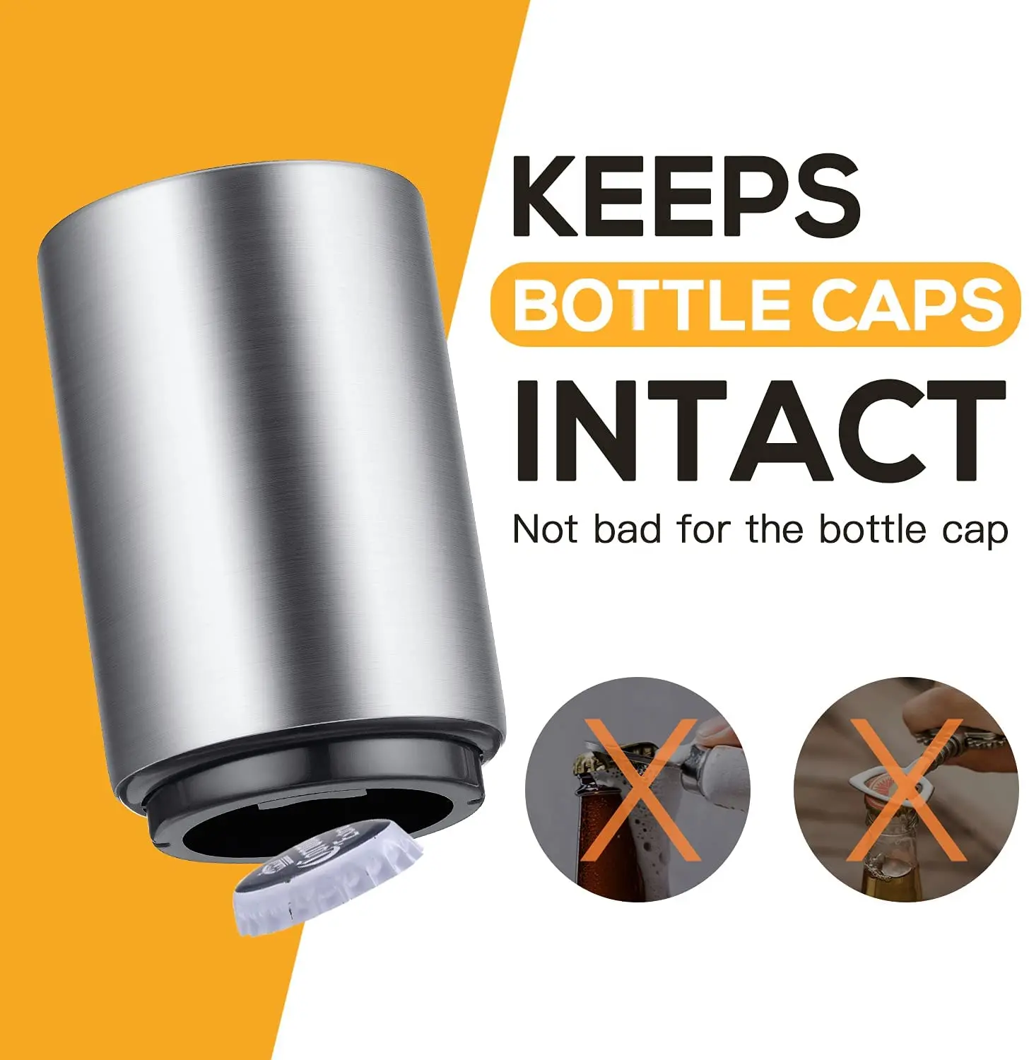 【Что вы получите 】: вы получите: серебристый автоматический открывалка для бутылок из нержавеющей стали: 1 шт. Быстро нажмите и вставьте крышку бутылки. Без dagame для крышки хорошо подходит для коллектора крышки бутылки.
