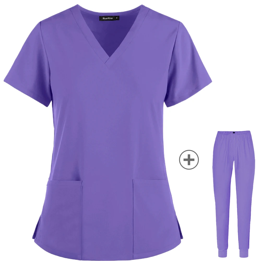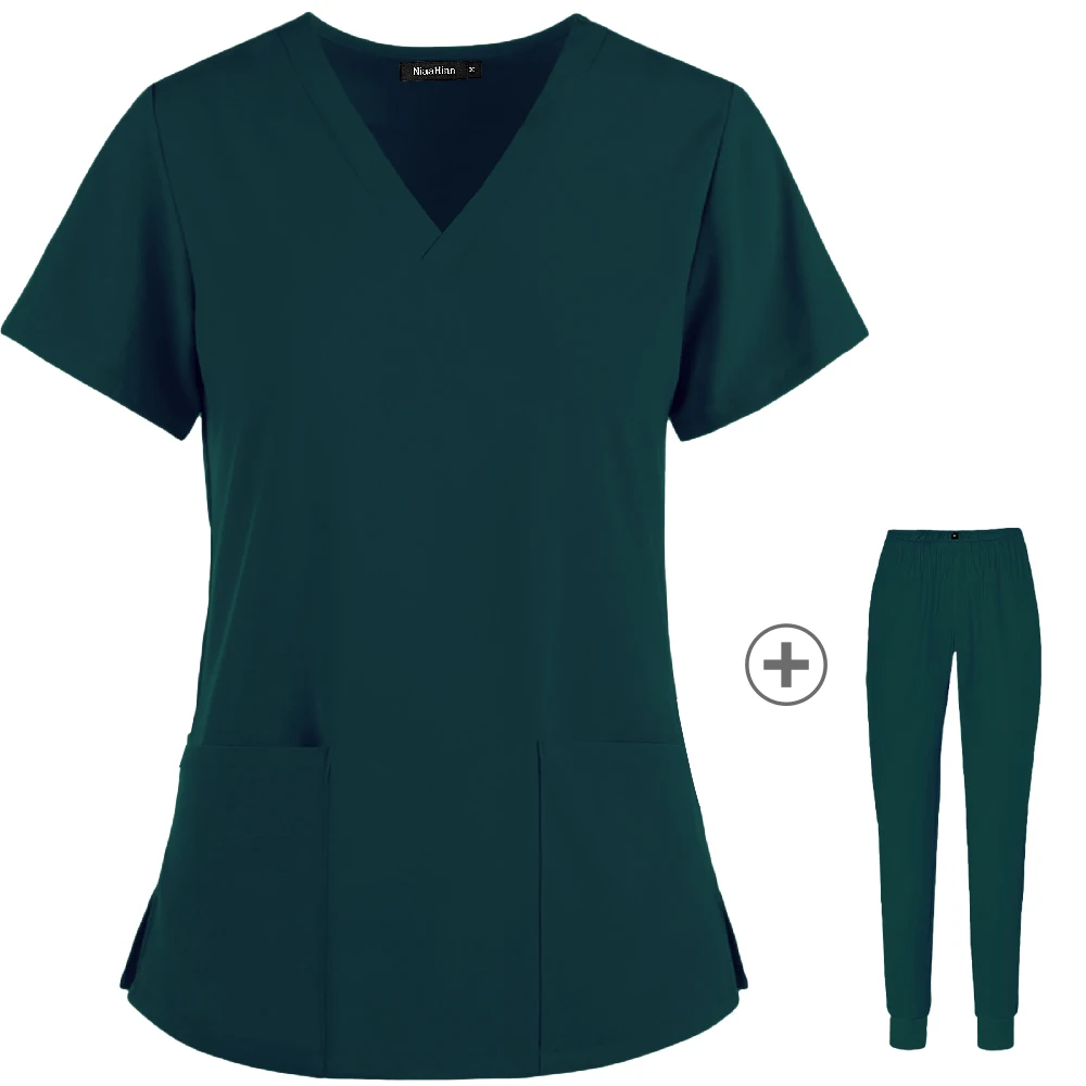 Медицинская униформа для операционной, женские скрабы, одежда с рукавами и V-образным вырезом, футболки для рабочих, топы, летняя униформа, медицинские аксессуары