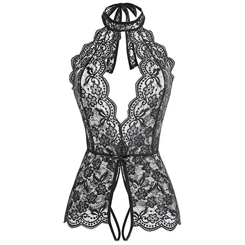Сексуальное кружевное нижнее белье, горячее эротическое нижнее белье, женское платье-комбинация с лямкой на шее, откровенное нижнее белье, сексуальная пижама