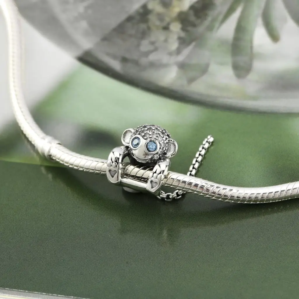 Женский браслет из серебра 925 пробы с подвесками в виде обезьяны, ...