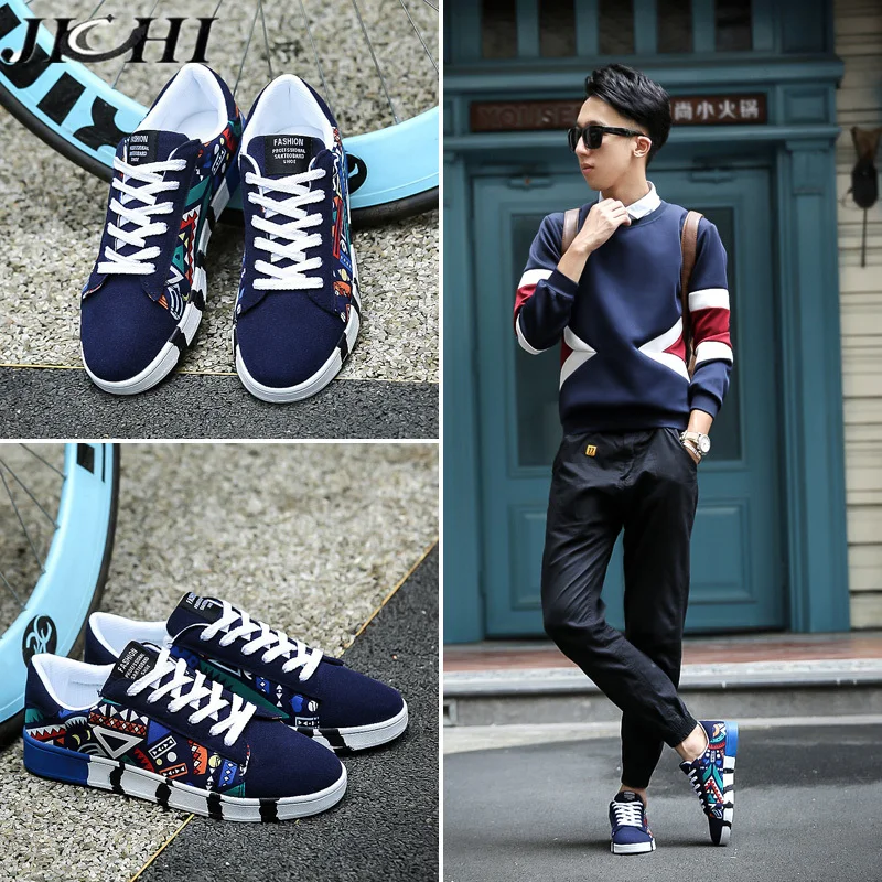 Мужские повседневные кроссовки, плоская Вулканизированная подошва, с принтом, для влюбленных