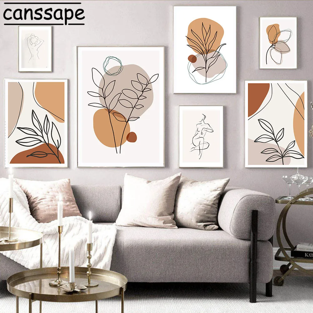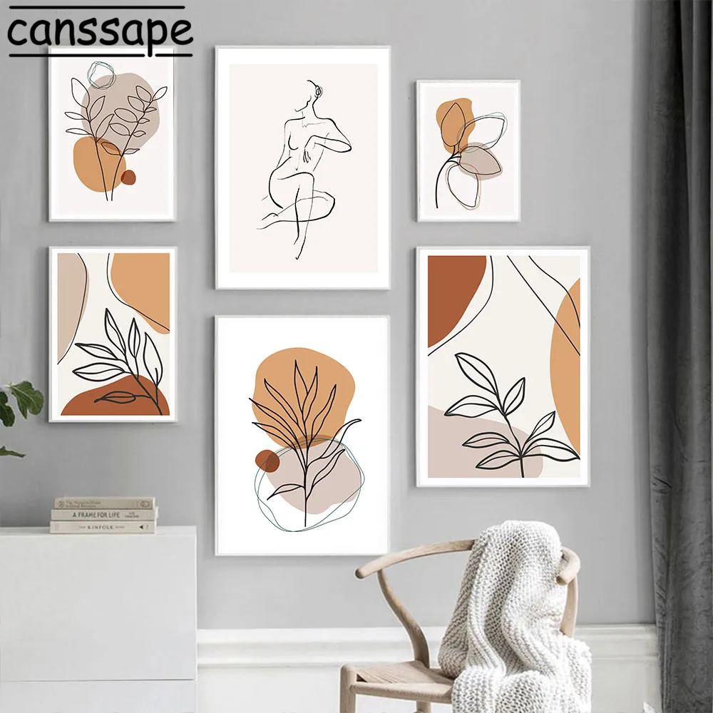 Абстрактный настенный художественный постер линия лист холст печать женщина обнаженная картина искусство Бохо постеры и принты для украшения гостиной