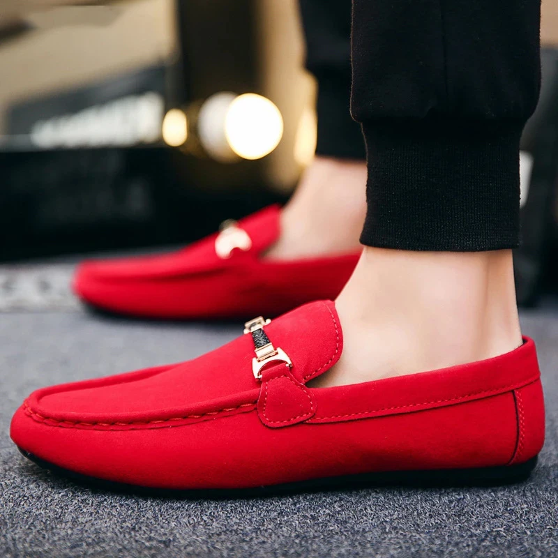 Модные мужские лоферы, черные, синие, красные, удобная мужская обувь без шнуровки, мягкая повседневная обувь, мужские мокасины на плоской подошве для вождения