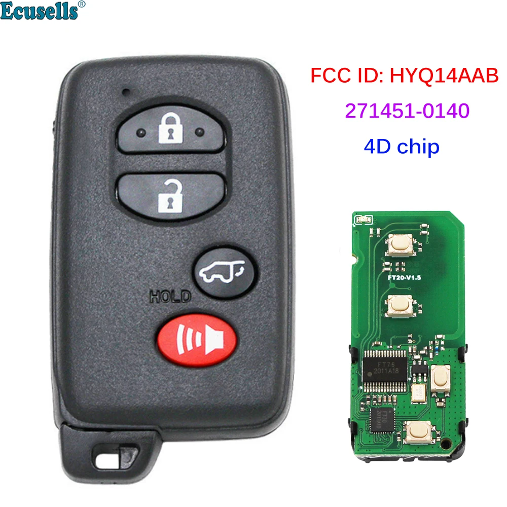 4-кнопочный умный Бесконтактный дистанционный ключ 312314315433 МГц 4D чип для Toyota Highlander 2008-2013 FCC ID HYQ14AAB 271451-0140