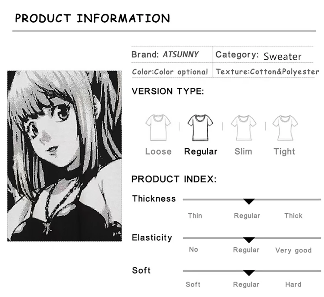 Женский вязаный свитер ATSUNSET, в стиле аниме тетрадь смерти, винт...
