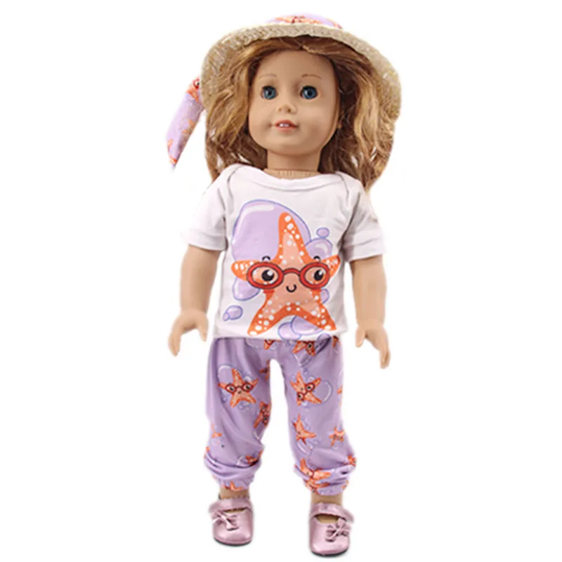 18 дюймов, Одежда для кукол, Милая футболка с котом, брюки, шапка 4...