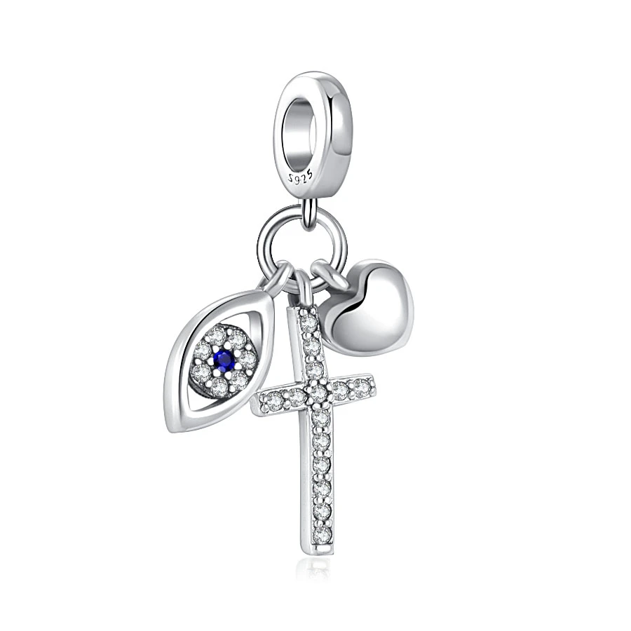 Браслет женский из серебра 925 пробы с бусинами и крестом в виде лотоса