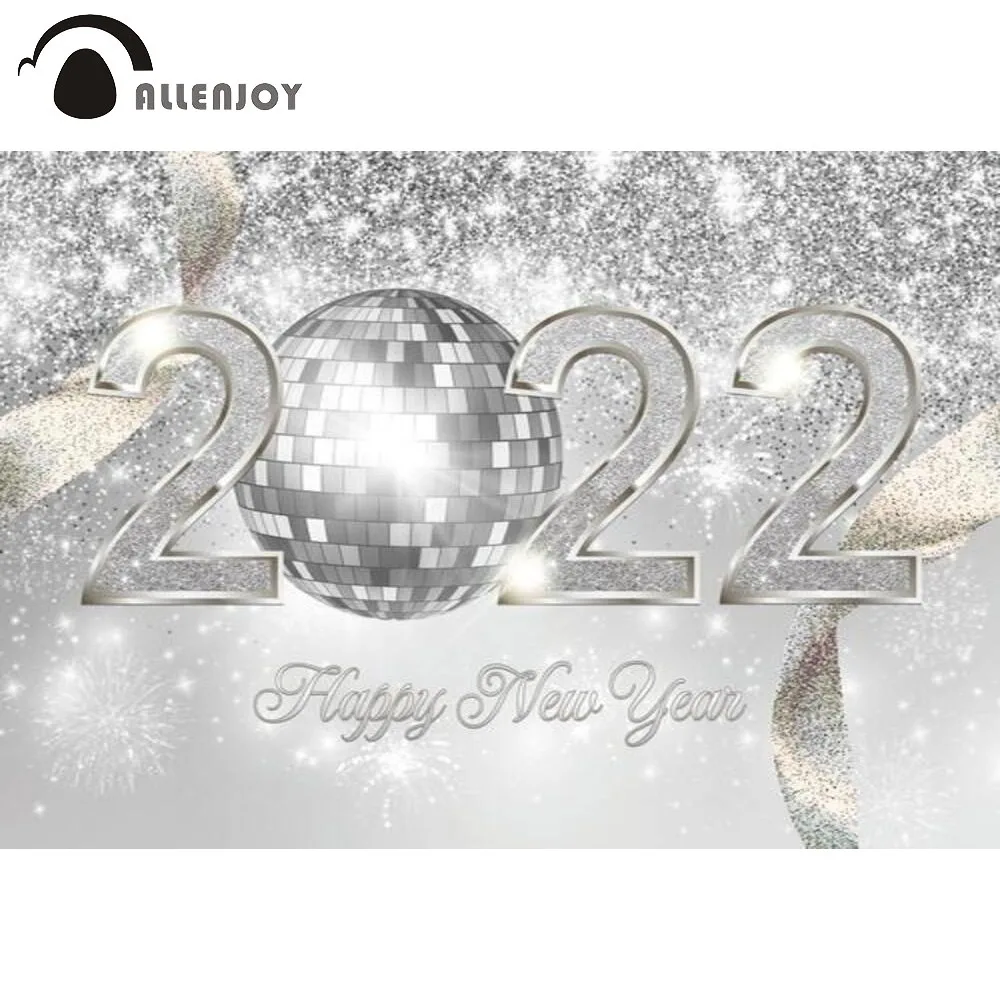 Allenjoy Блестящий серебряный 2022 фон для фотографий с новым годом семейный праздник вечевечерние Декор баннер фотостудия реквизит фотокабинки