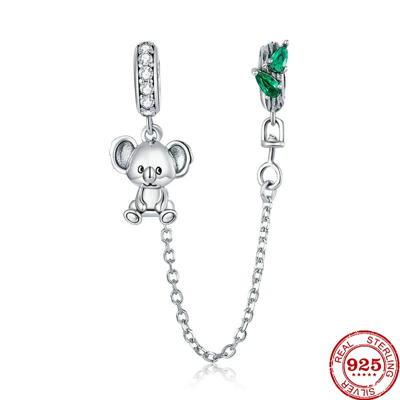 925 Серебряная Новая защитная цепочка любовь замок Ангел коала цветок Бусина Подходит Pandora оригинальные браслеты шармы бусины для женщин DIY ювелирные изделия