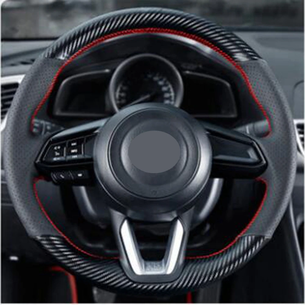 Фотообои с нескользящей черной кожей из углеродного волокна для Mazda чехол рулевого колеса автомобиля CX3 чехол рулевого колеса автомобиля CX5 2017 2018