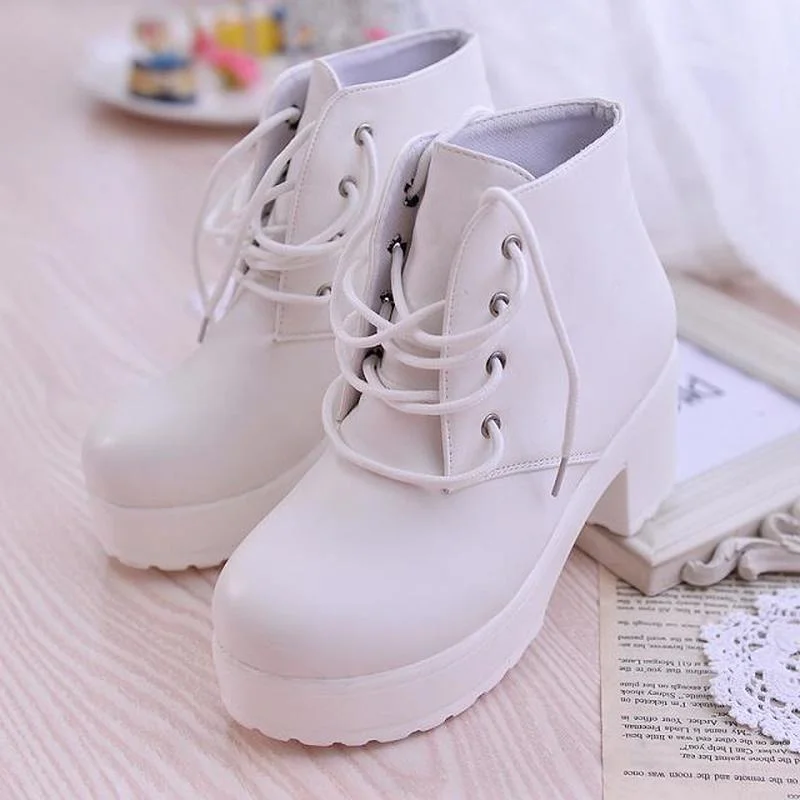Ботинки на платформе и блочном каблуке, со шнуровкой, черные, белые
