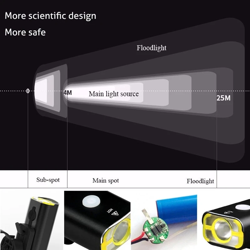 Велосипедный фонарь на руль, светодиодный, 800 люмен, USB-зарядка