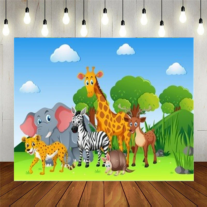 Мультфильм прерий Животные Жираф Леопард Мальчики День Рождения фотография фон для новорожденного ребенка душ торт стол Декор баннер