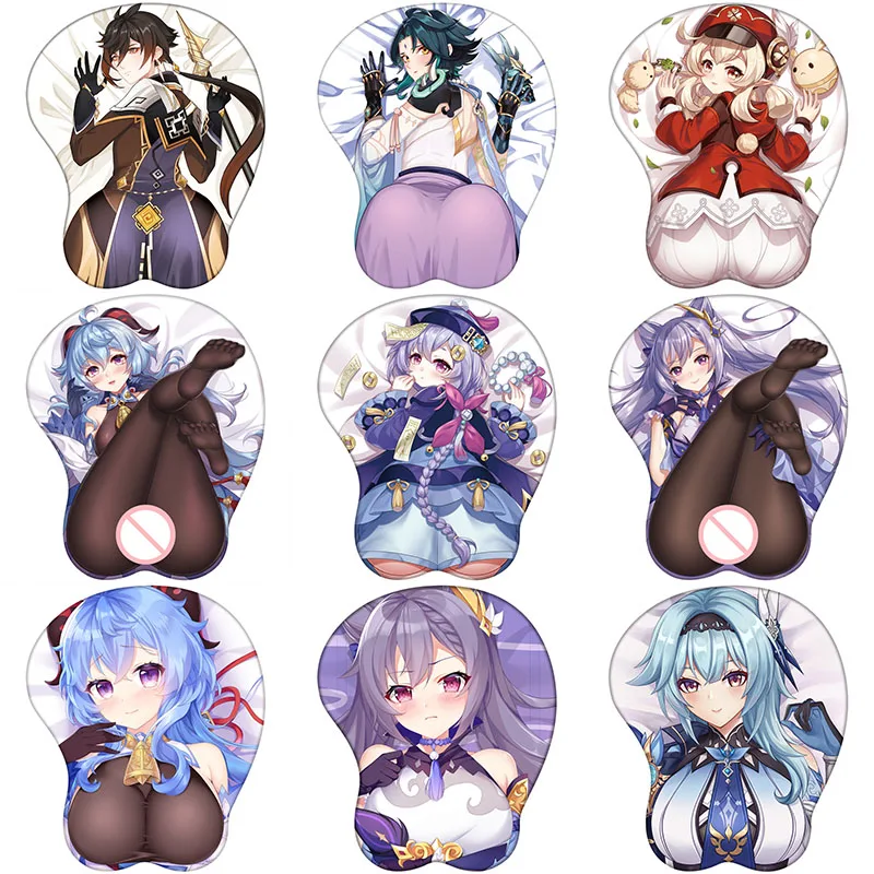 Удобный игровой коврик для мыши Genshin Impact, 3D стерео коврик для мыши Zhongli Keqing, силиконовый коврик для мыши на запястье для ПК и ноутбука
