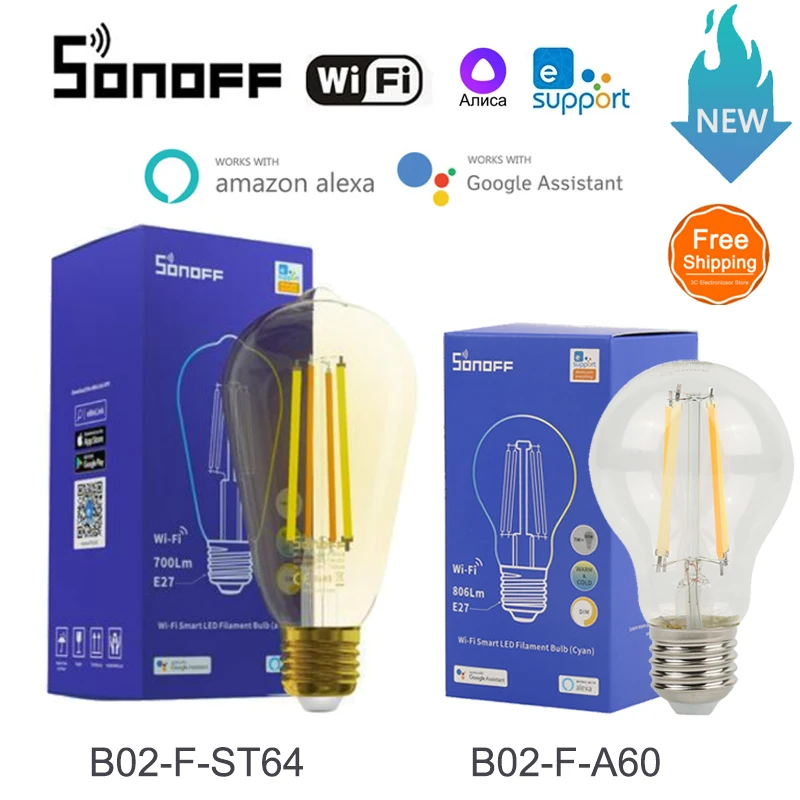 Интеллектуальный выключатель света SONOFF B02-F-ST64A60 WiFi смарт-лампа со светодиодными нитями на цоколе E27 затемнения светильник лампа eWelink умный дом через Alexa Google Yandex Алиса: безумие возвращается