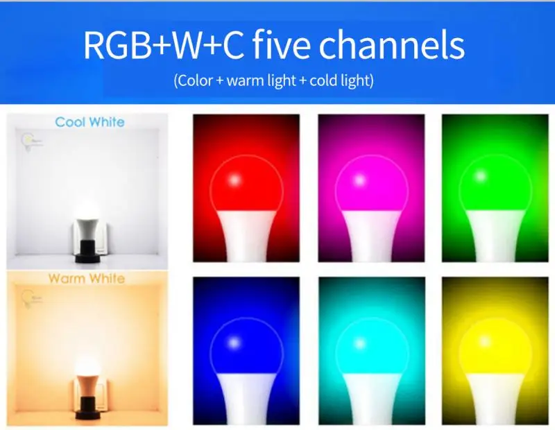 Цвет: RGB + W + C (цвет + теплый светильник + светильник)