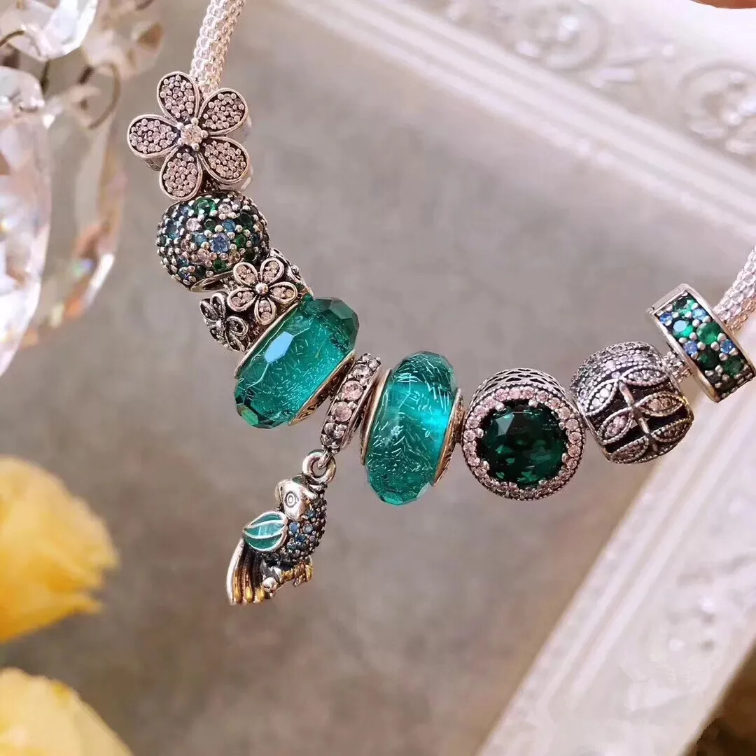 Браслет Pandora из серебра 925 пробы с зелеными лепестками, КАКТУСО...