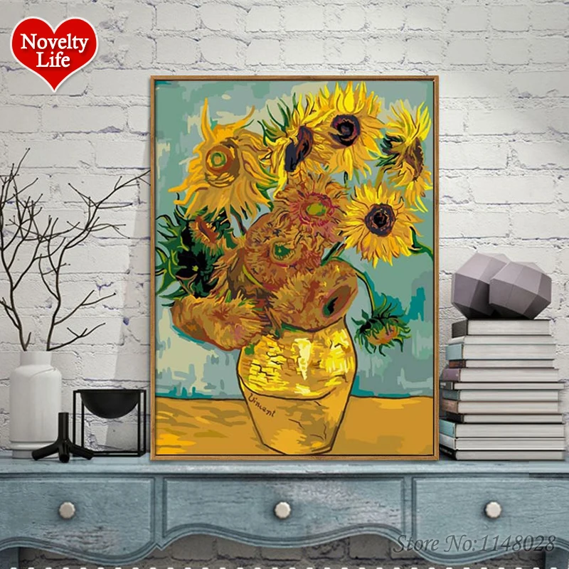 Раскраска по номерам сделай сам, картины Ван Гога, виды подсолнухов, картины по номерам с принтом слез, ирисей, краски для домашнего декора, подарки