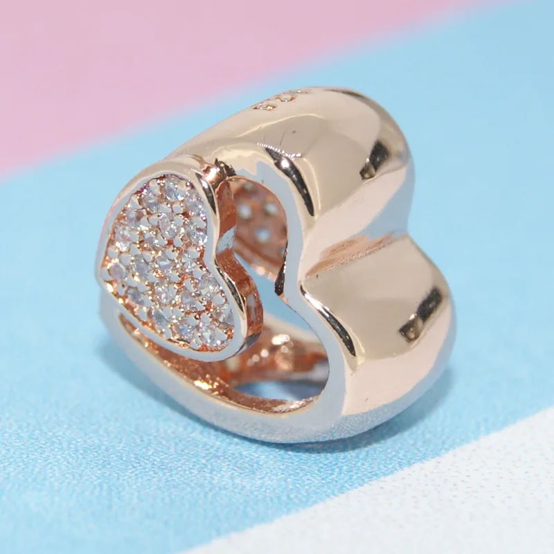 Новинка, подвески-бусины в виде серебряного блестящего сердца, лепестков, стрекозы, розовое золото, подходят для браслетов Pandora, женские Украшения сделай сам