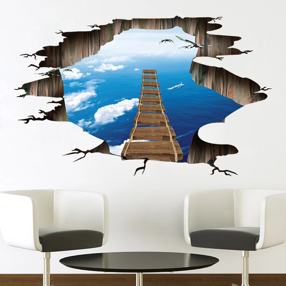 Настенная Наклейка 3D с имитацией моста на полстену, наклейки для д...