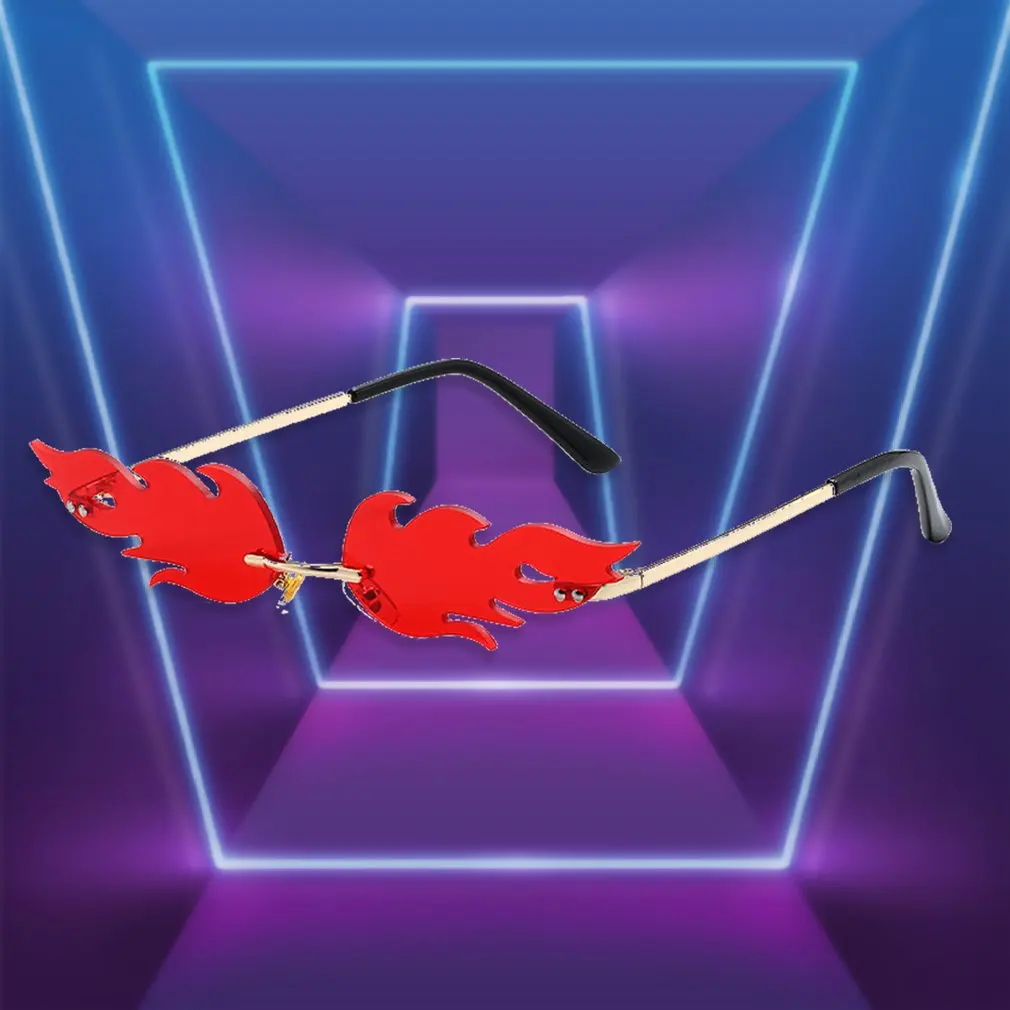 Модные солнечные очки в форме огненного пламени для женщин и мужчин, солнцезащитные очки без оправы в форме волны, защита от УФ 400, роскошные узкие солнцезащитные очки, аксессуары для велоспорта