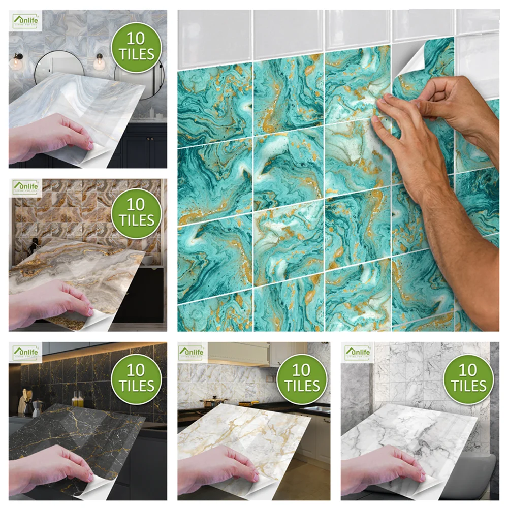 15x5 см20x20 см зеленая мраморная плитка наклейка Водонепроницаемая Настенная Наклейка Backsplash для ванной кухни кемпера украшение для дома белый