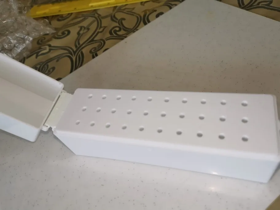 Товар пришел быстро, за 18 дней в постомат. Контейнер целый и чистый, но есть царапины между отверстий.