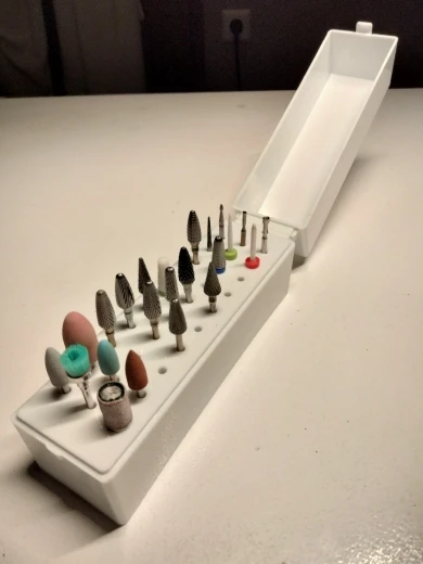 Отличная коробочка. Все фрезы достаются легко, но при этом если закрытая коробка перевернётся фрезы не выпадают.