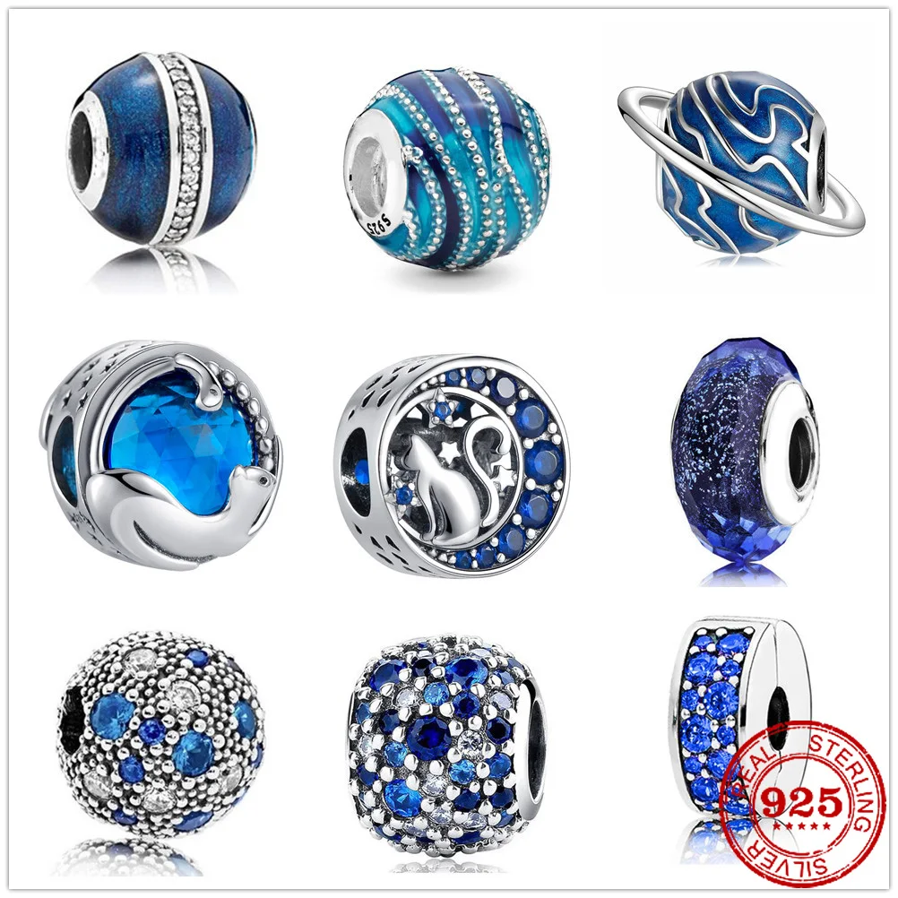 Лидер продаж 100% Настоящее серебро 925 пробы Синяя Звезда Шарм подходит для оригинального браслета Pandora Eashion DIY ювелирные изделия для женщин