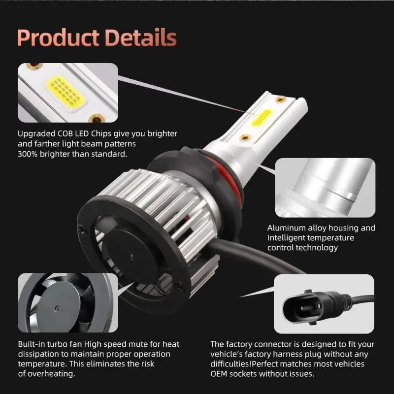1. Высокая яркость: Последний COB с 6000K холодный белый Светодиодный чип; На 300% ярче, чем существующие галогенные фары. Передовая технология обеспечивает идеальный Рисунок луча без каких-либо черных пятен или противотуманный светильник.