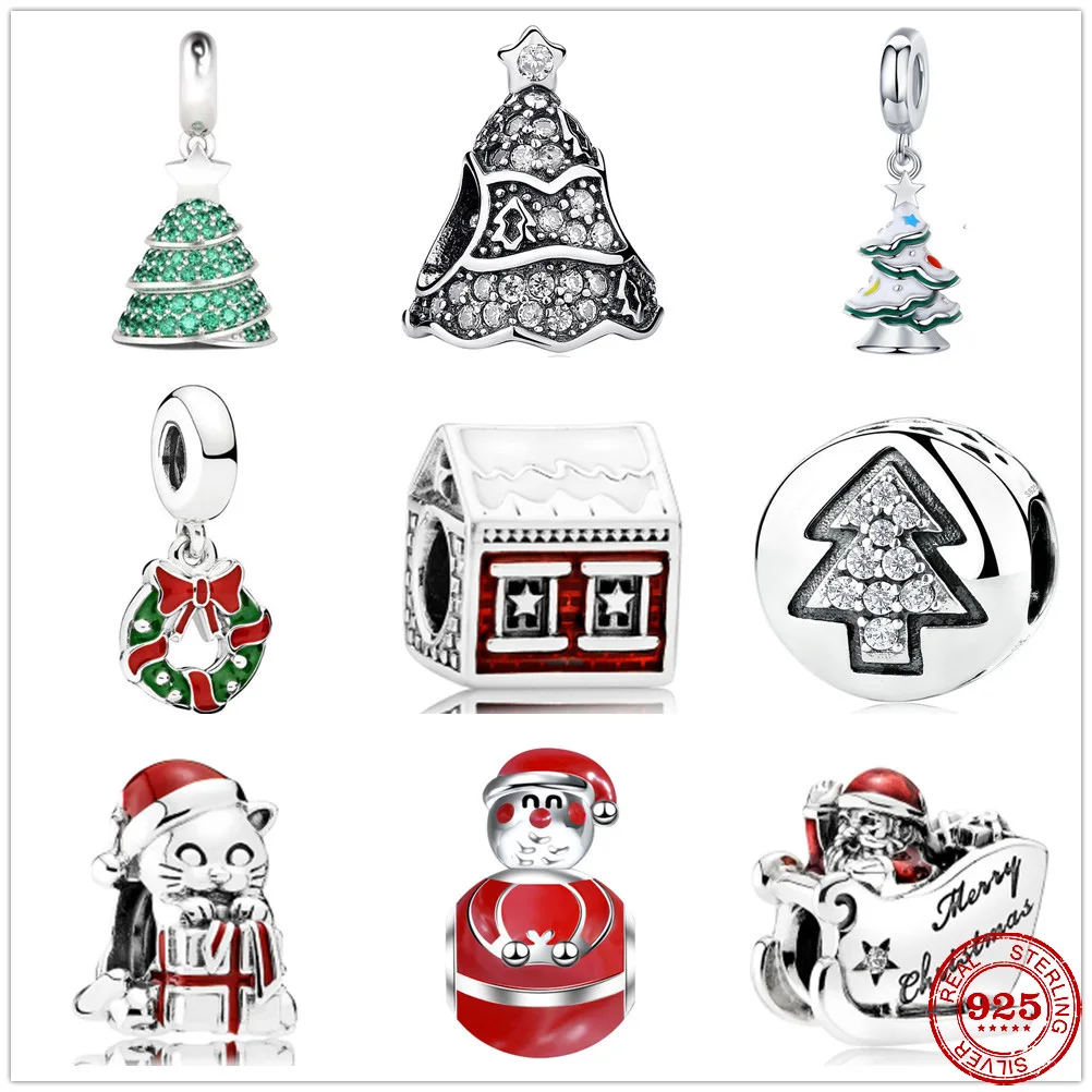 Лидер продаж 100% Подлинная Рождественская елка и подвеска в виде Санты серебряного цвета подходят для оригинальных браслетов и браслетов Pandora