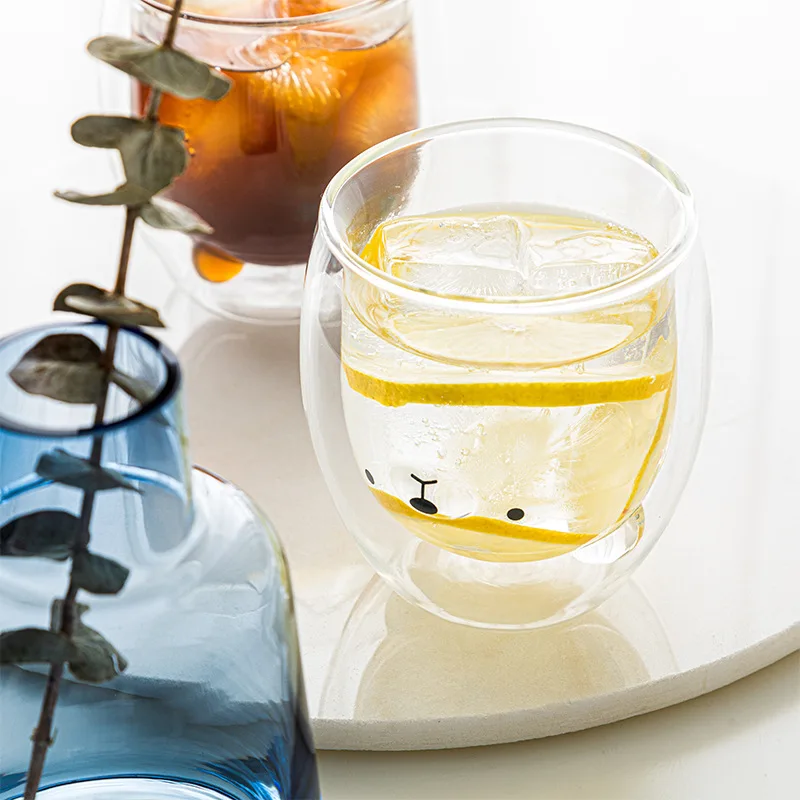 Симпатичный медведь, двойная стеклянная кружка, креативная мультяшная изоляция, кофейный сок, молоко, чашка для завтрака, послеобеденного чая, Детская кухонная посуда