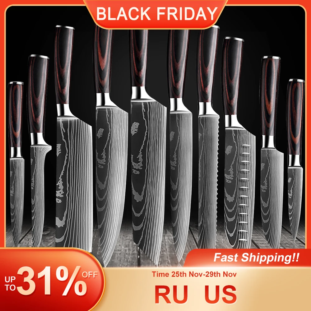 1-10 шт., Набор японских кухонных ножей шеф-повара из нержавеющей стали