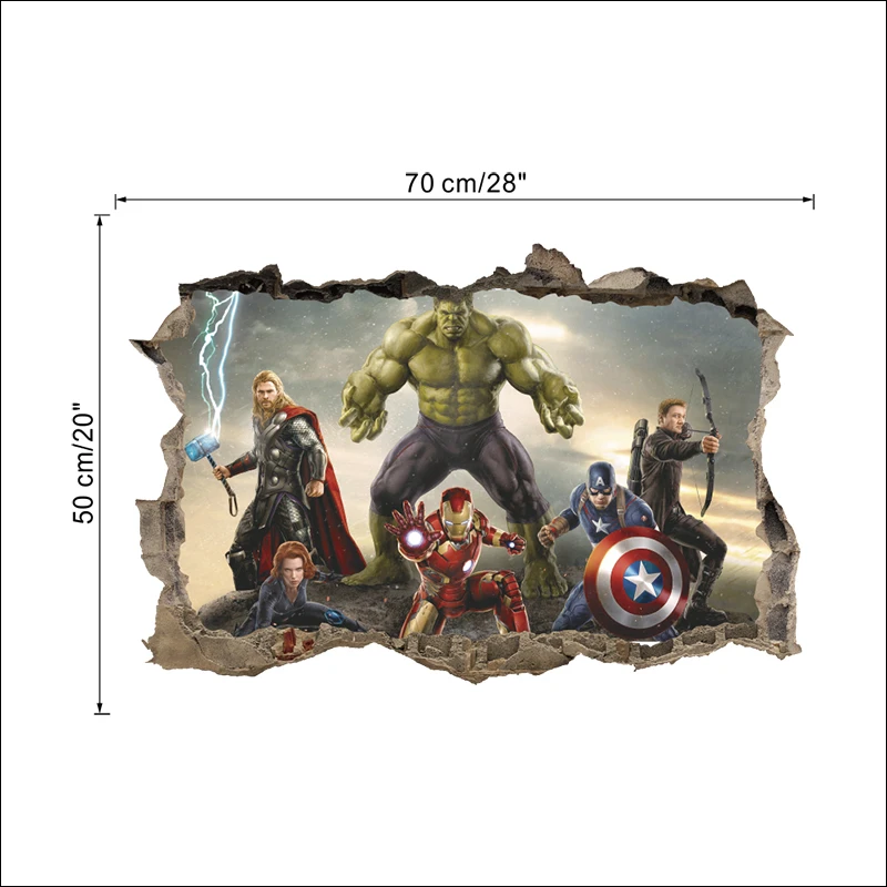 3D эффект Мстители сломанные наклейки на стену для детской комнаты ...