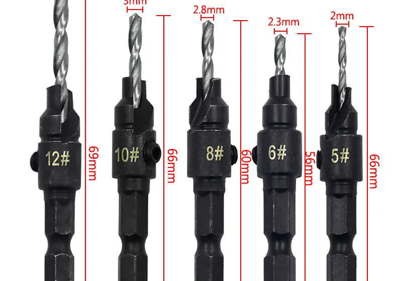 Набор сверл для зенковки, комплект из 5 насадок для деревообработки...