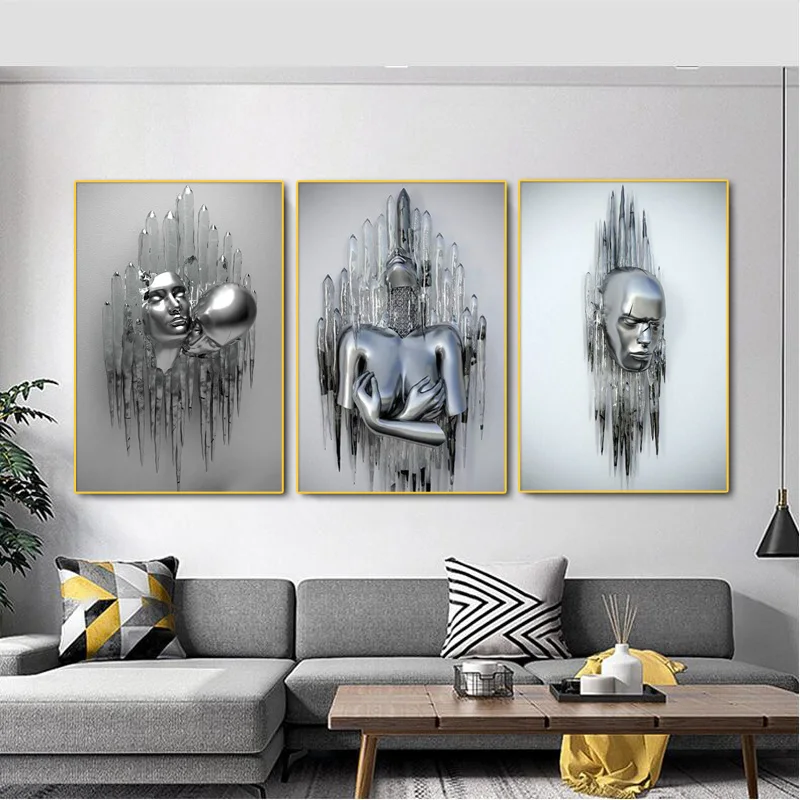 Абстрактная Металлическая Статуя, холст, живопись, скульптура, плакат и принты, настенные художественные картины для гостиной, дома, отеля, украшение