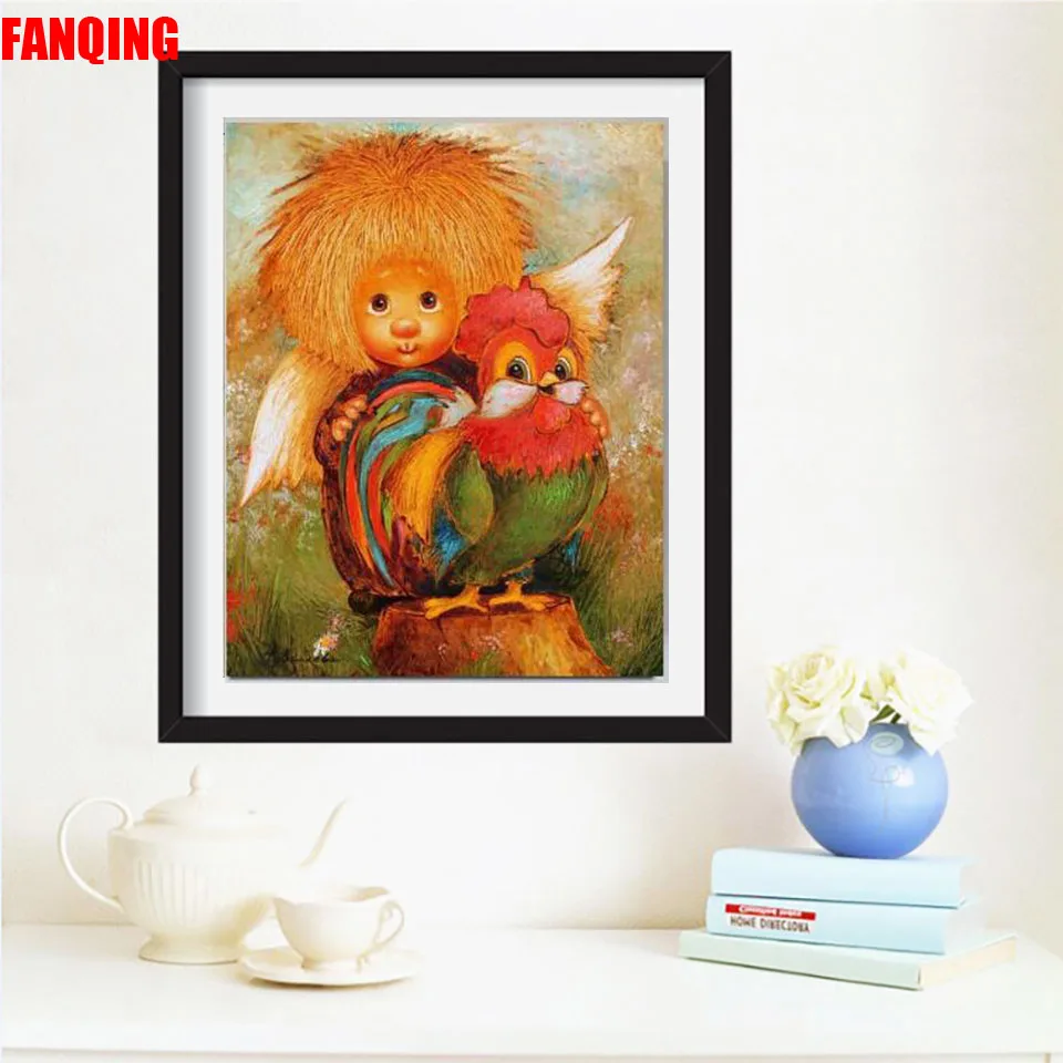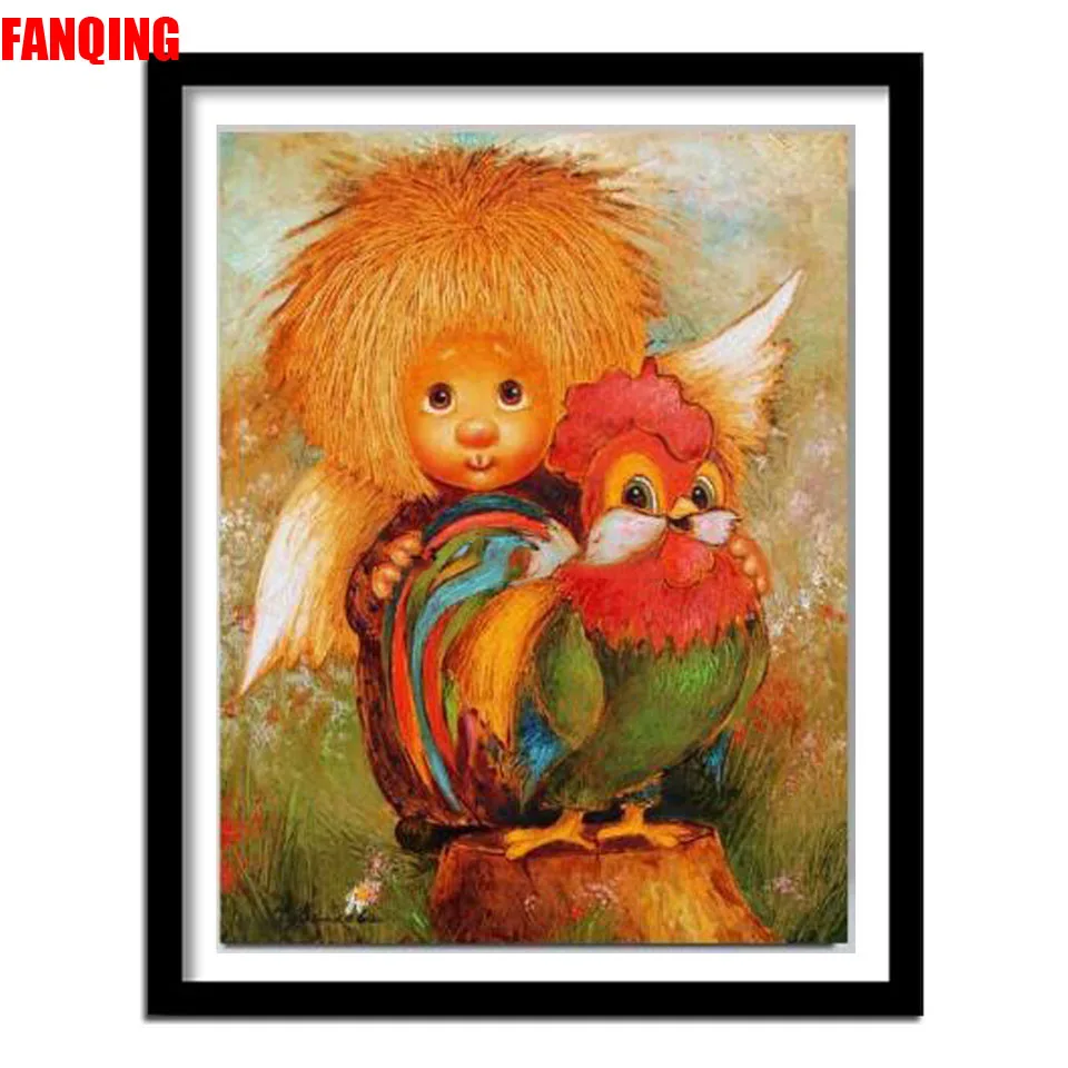 Картины с маленьким ангелом и петухом, алмазная живопись, мультфильм 5d, Алмазная мозаика сделай сам, полная вышивка крестиком, алмазная вышивка, живопись