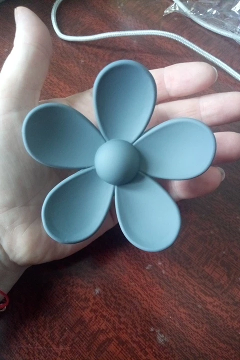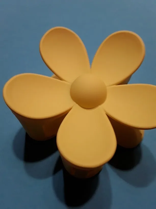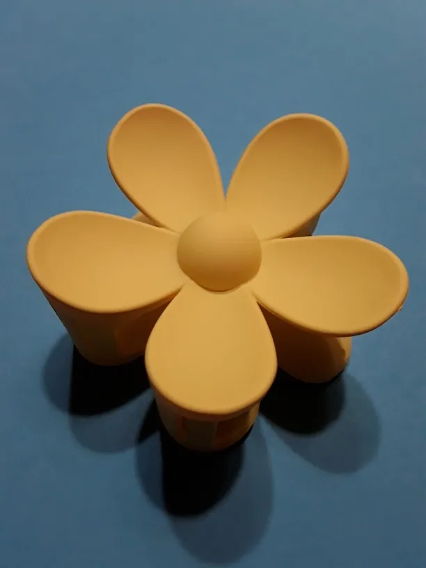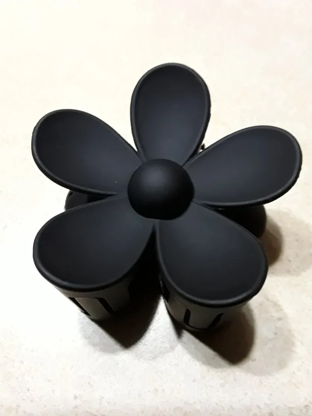 Очень красивая заколка. Сделана аккуратно, приятный, матовый пластик. Диаметр цветка 7см. зубчики длинные, но довольно деликатные. Волосы держит хорошо, смотрится очень интересно. Заказом довольна, продавцу большое спасибо за отличный товар.